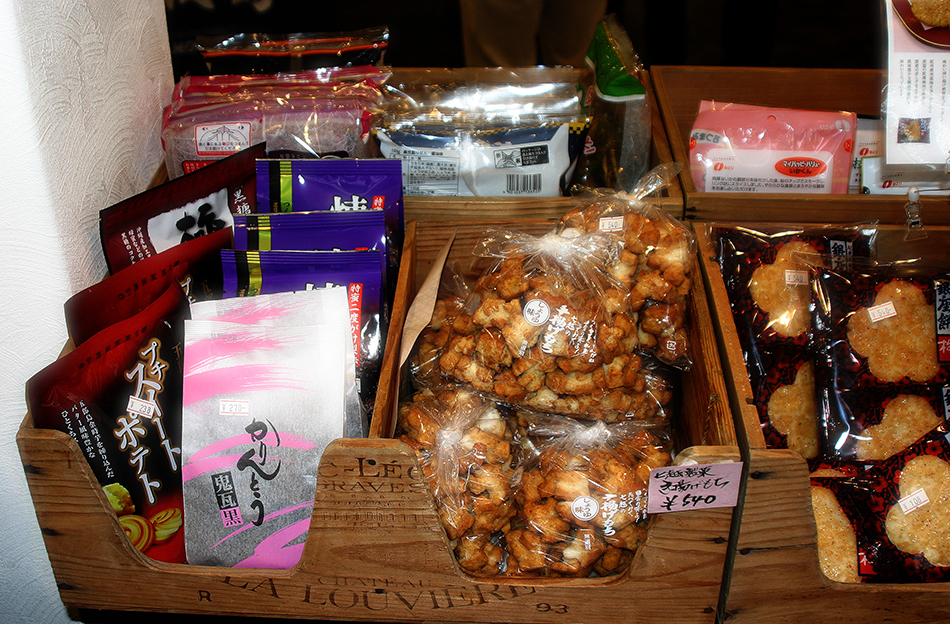 銀座もち / 鬼瓦黒かりんとう / 大きな秘蔵っ子ピーナッツ / 羊羹各種 / 芋けんぴ / 他